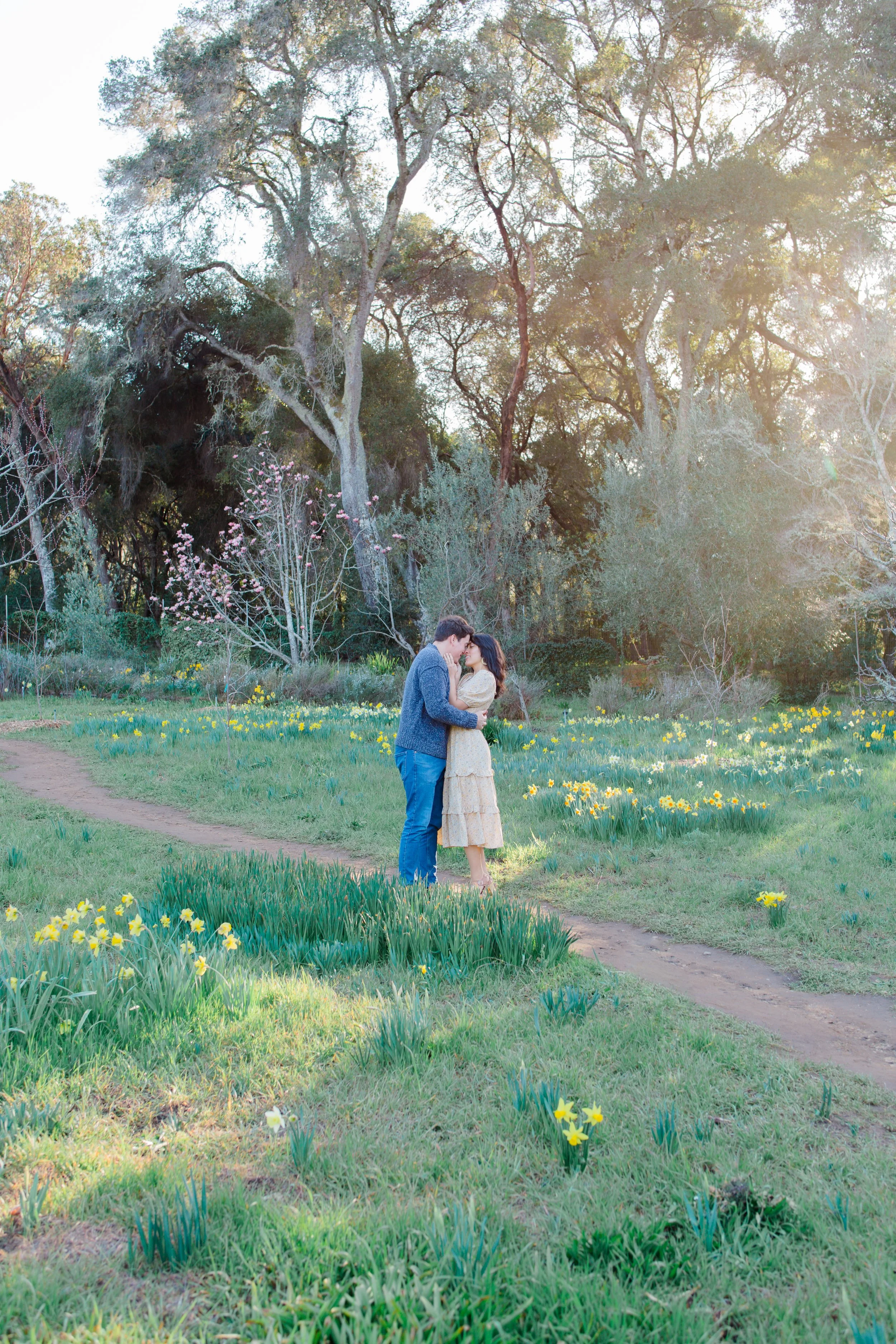 During my first consultation call with M & M, this beautiful bride mentioned a Jane Austen aesthetic for the inspiration for their summer wedding. Oh boy did I take that sliver of info and run with it! I mentioned Filoli as being a perfect backdrop for an engagement session that would compliment this theme. If you know me you know I love being here and will find any excuse to come enjoy this property! Even in the middle of January there were stunning fields of daffodils and bright magnolias. A bit of wind made our session ever so cinematic. I loved being able to take a step back and watch these two interact. What a great way to start a season of engagement sessions!