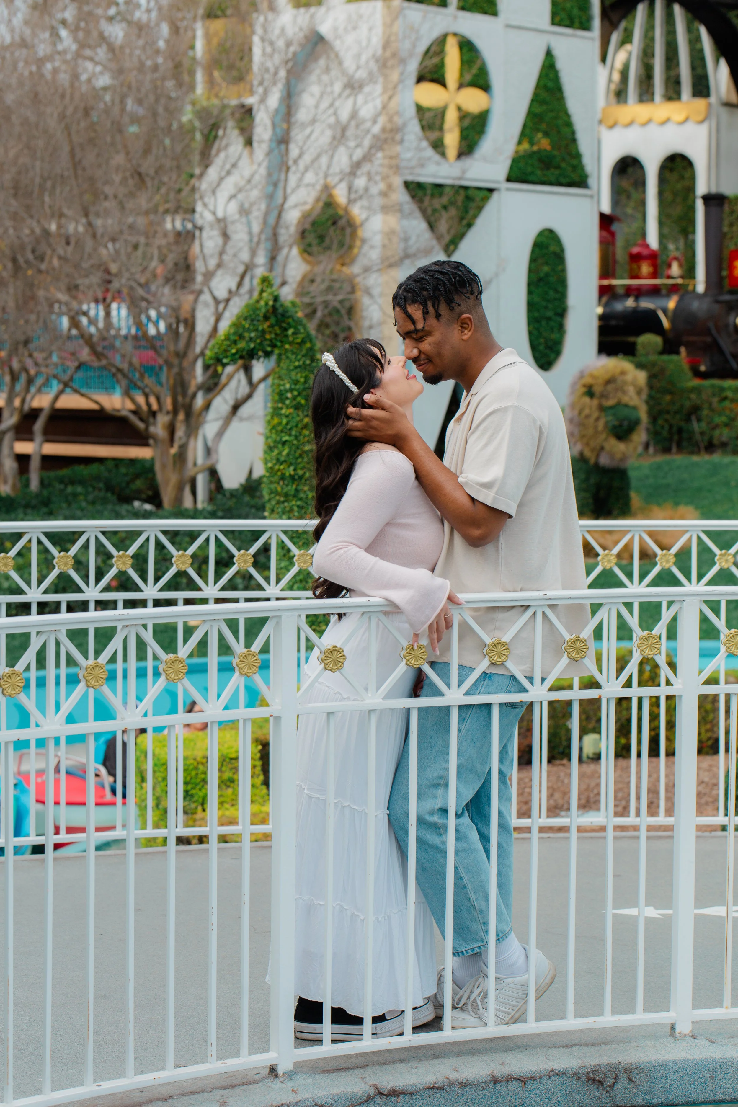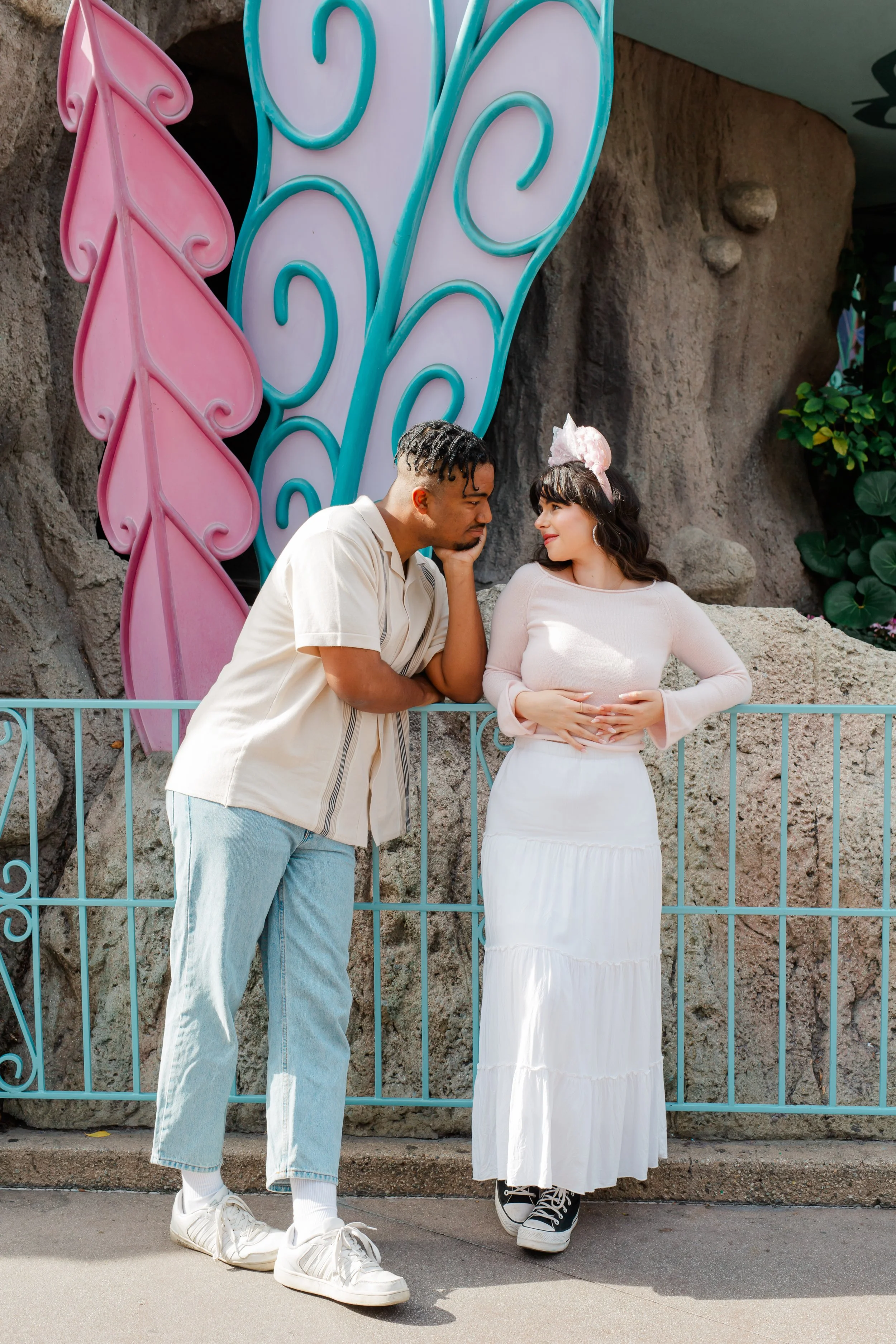 As a past Cast Member I’m familiar with navigating around guests and finding the quieter nooks for a good photo. It can be intimidating posing for the camera with so many tourists and passer-by’s, so I prefer a hands off approach that helps my couples relax and shine.
