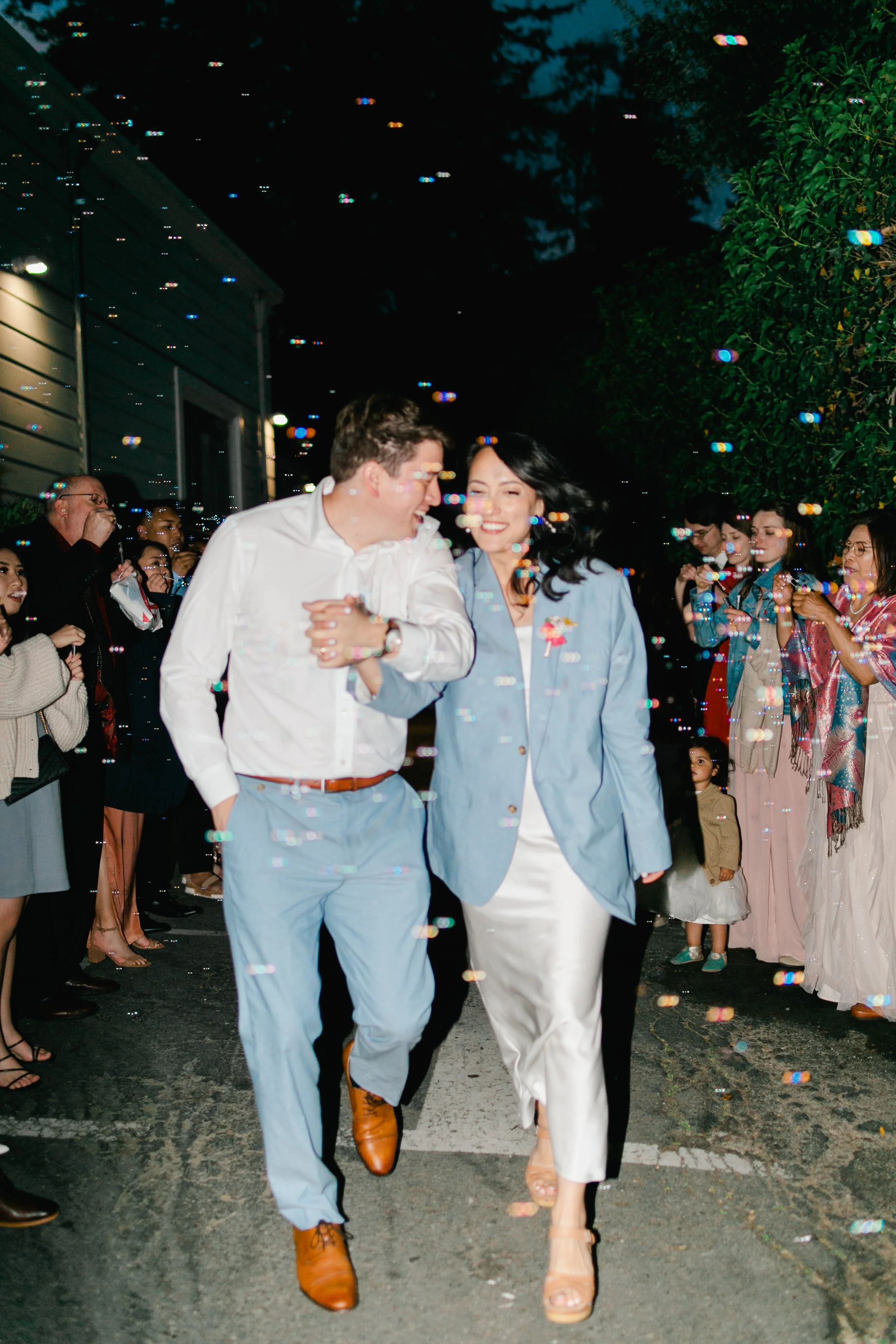 Bubble exits have quickly become my favorite way to photograph a grand exit! The bubbles look incredible, completely lit up by my cameras flash. They aren’t a fire hazard and don’t get in the way of the bride and groom like streamers or sparklers do.