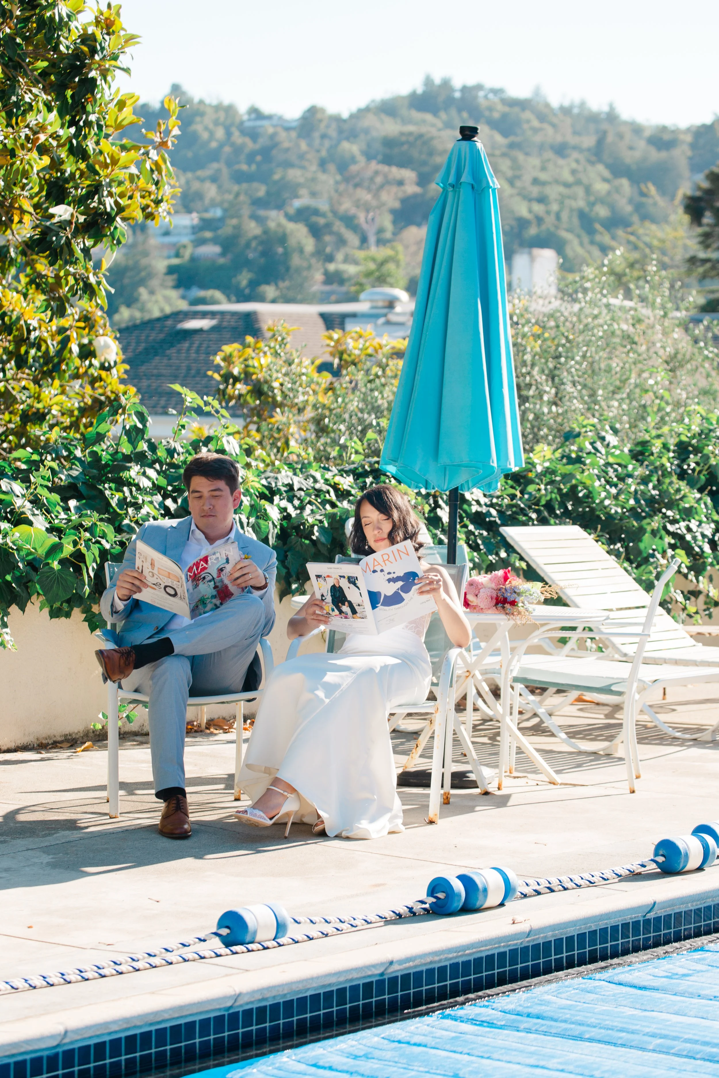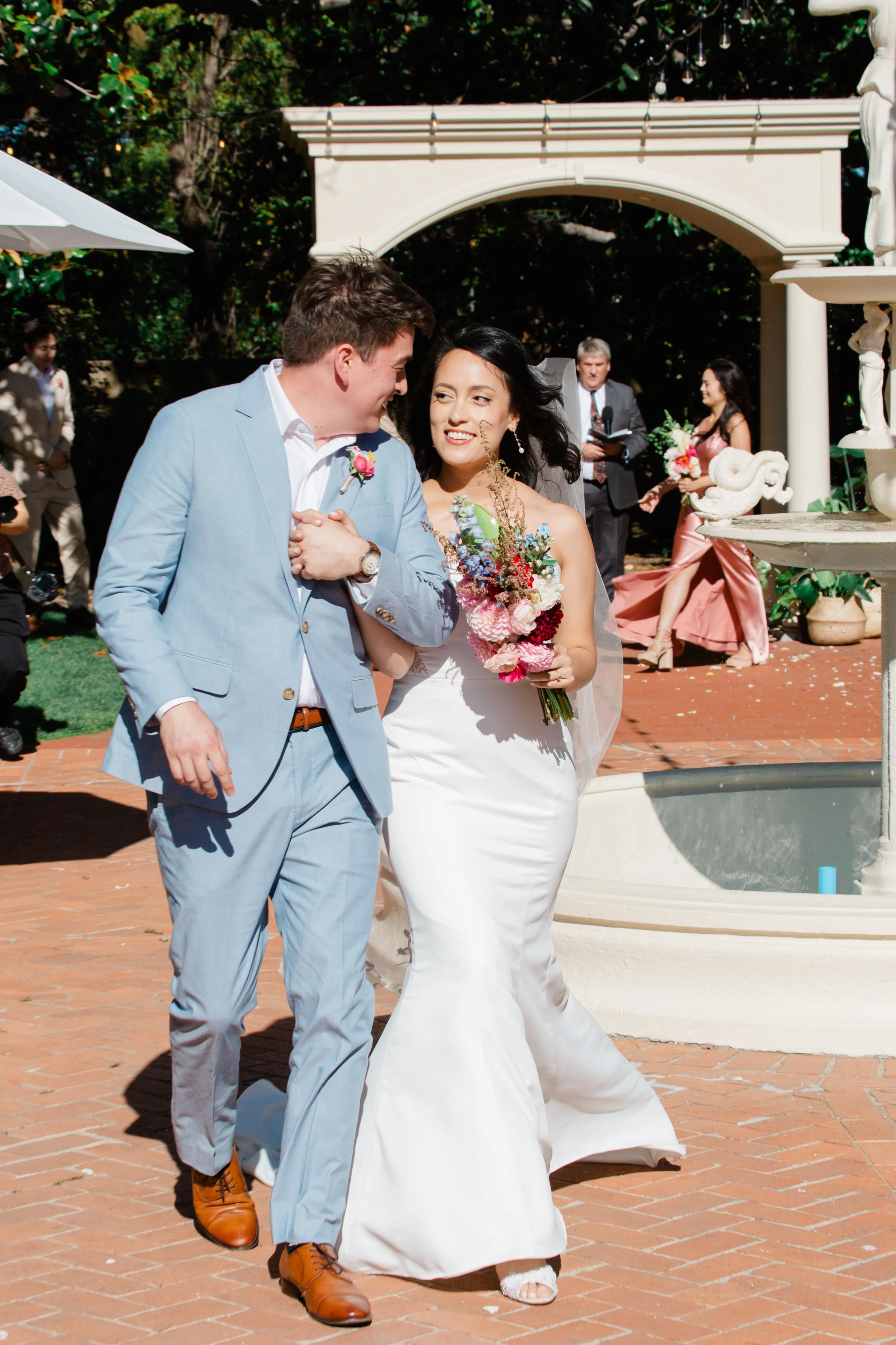 The two shared the sweetest first look in the corner of the beautiful courtyard. The Maple Lawn at the Elks lodge feels like a perfect hidden gem nestled in the hills of Marin. With stunning views of Mount Tam and the coolest historic home, I couldn’t imagine a better spot for the two to be wed!