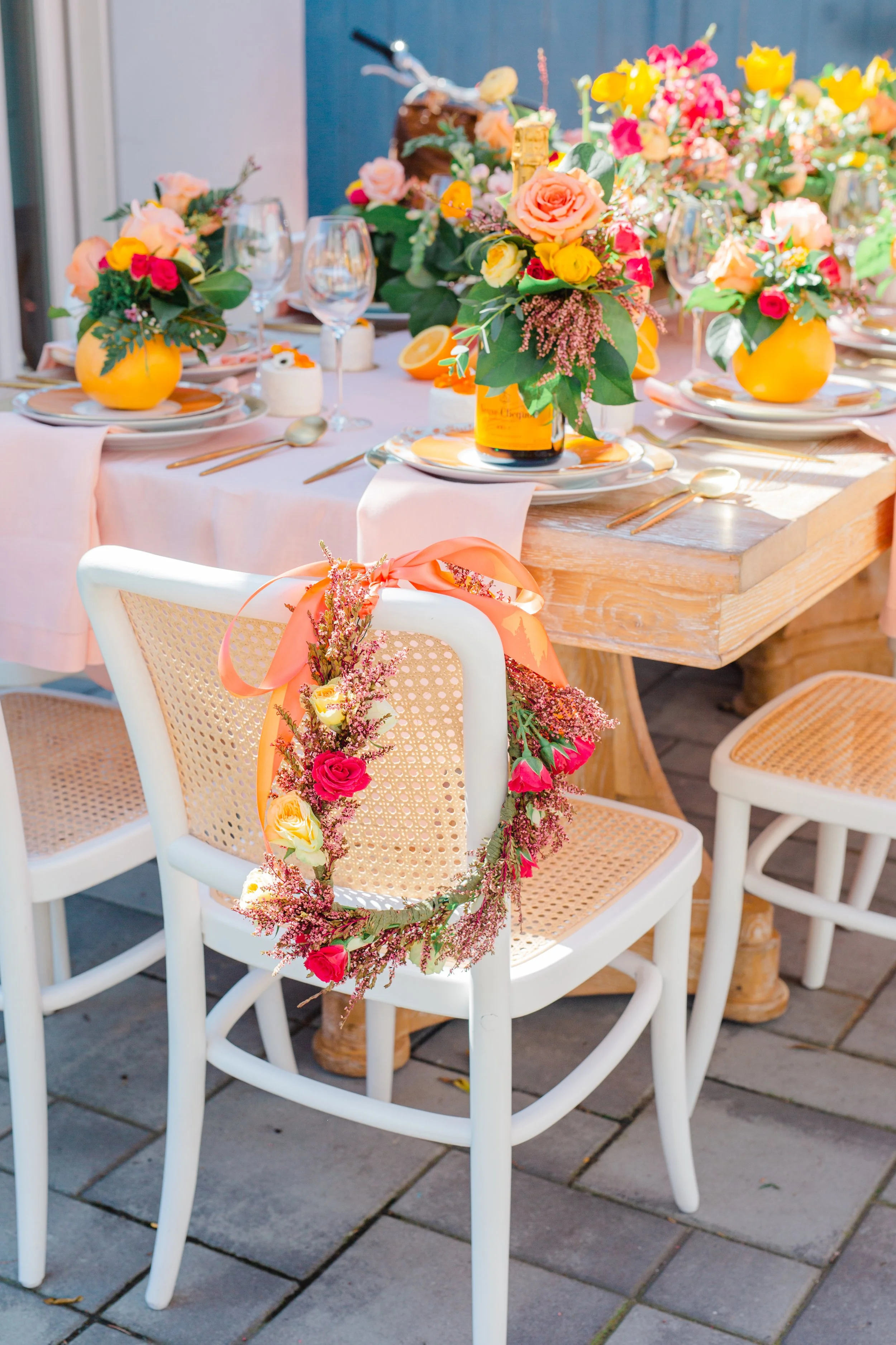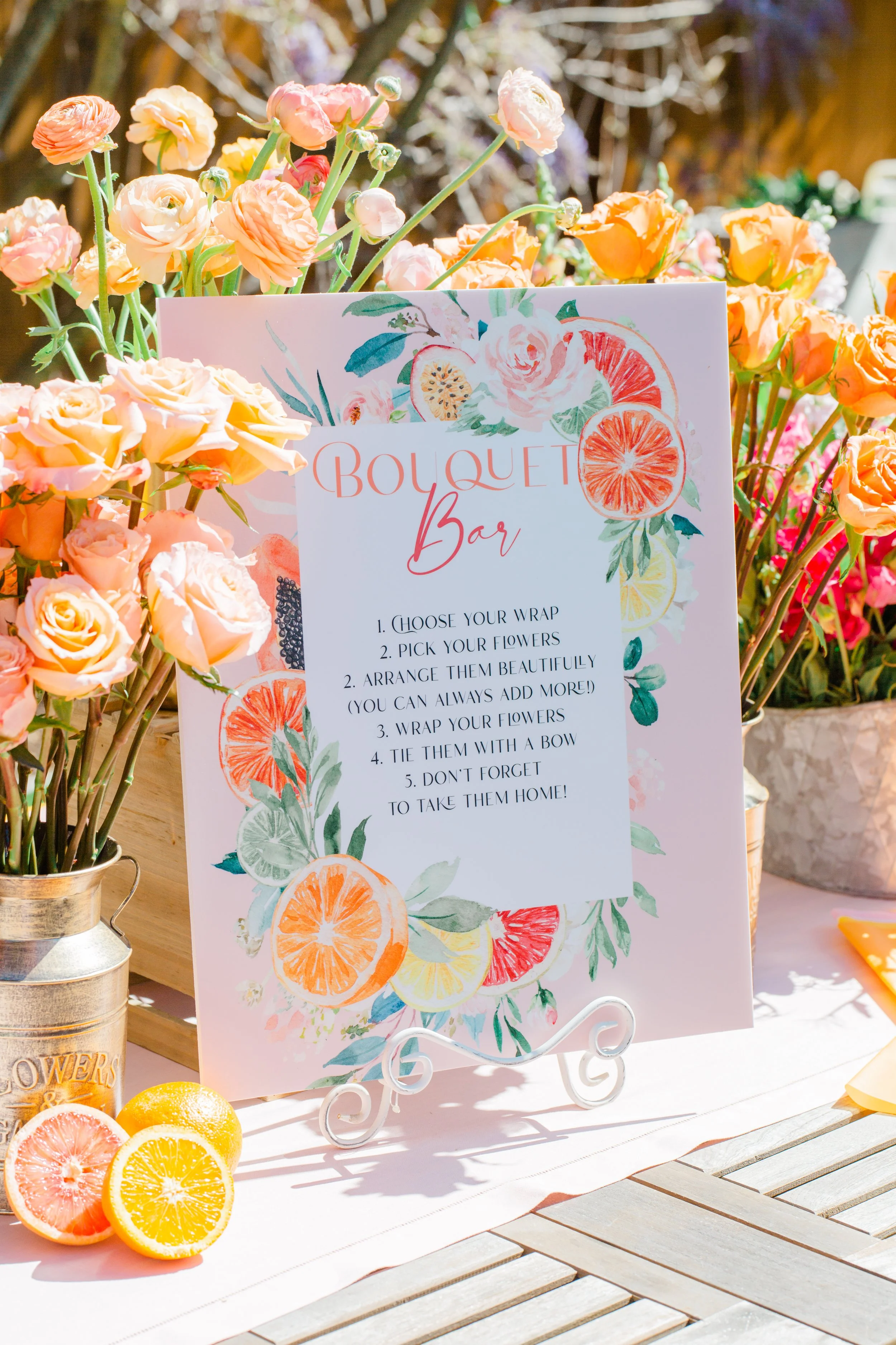 Orange ya glad it’s almost summer time? How fun is this stunning bridal shower?! Hosted at a private residence in Oakland, California, this party was planned down to the detail. Vibrant macaroons, fragrant citrus, custom cocktails, and a bouquet bar thrilled the beautiful bride of honor and her guests. It was a stunningly beautiful day/ Take a scroll for some summer inspiration!