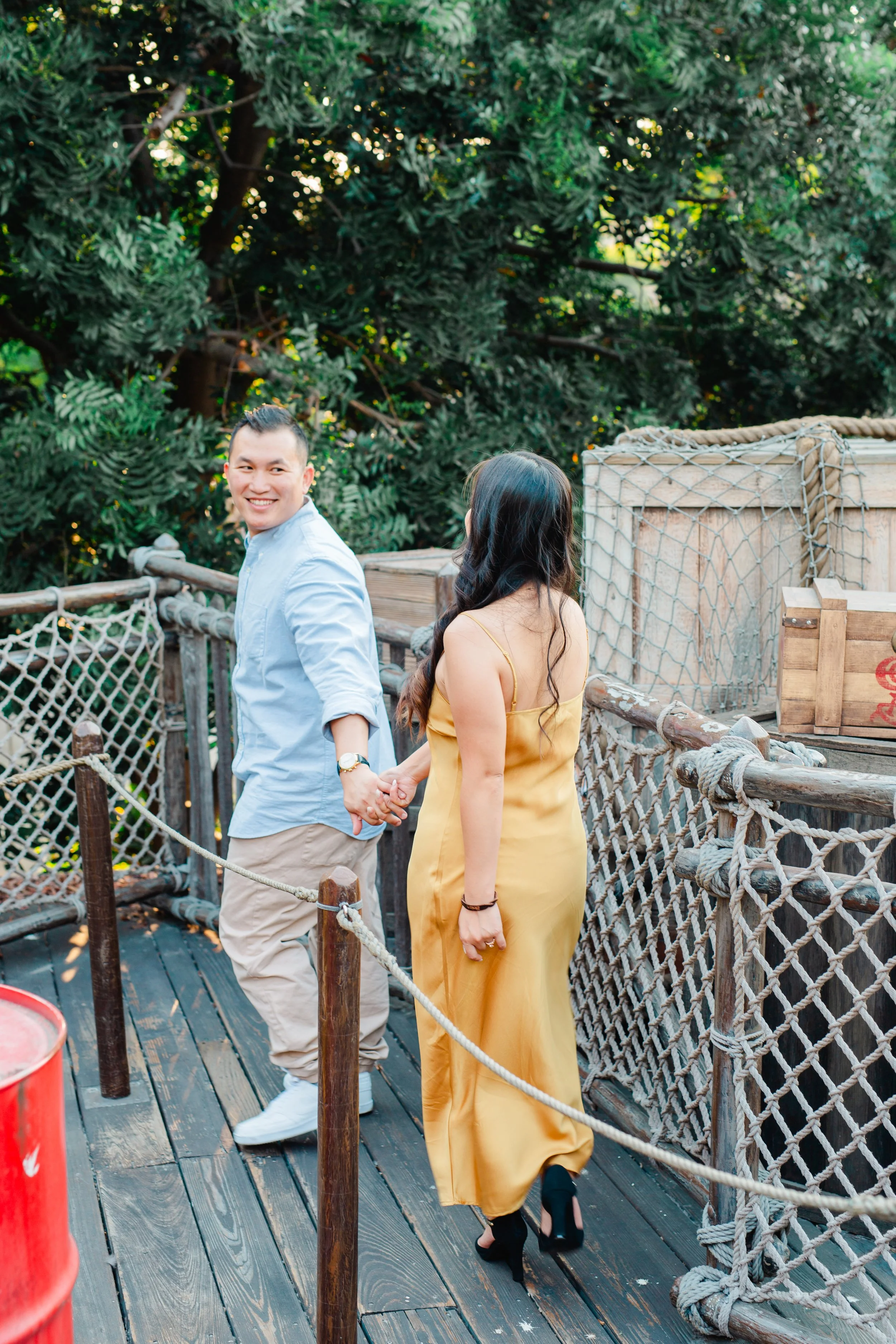 The forest canopy throughout Adventureland stretches more than 100 feet tall, with the Jungle Cruise being an opening day attraction, in operation since 1955. Ever changing, it was the perfect backdrop for this stylish couple!