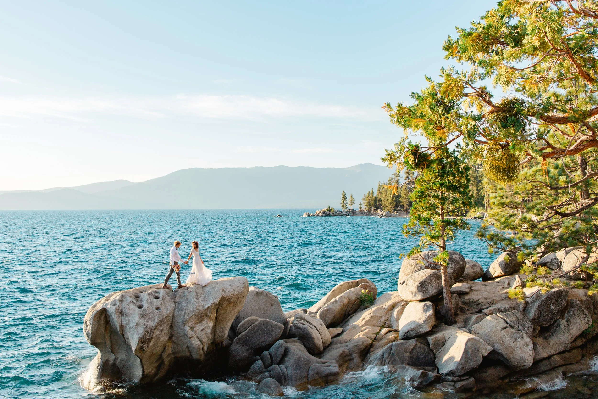 shared a beautiful and intimate ceremony along the rocks of Lake Tahoe, right on the border of California and Nevada. The woodsy, adventurous feel couldn’t have been a better backdrop for these two.