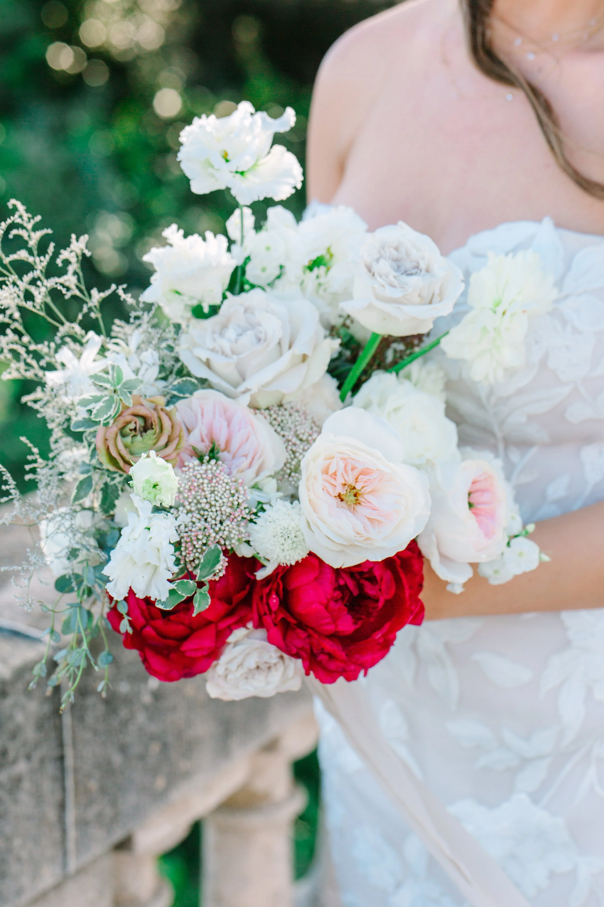 We started the day out with perfect sunshine, but a surprise raincloud met us and we ended our session under the cover of these gorgeous columns. At least the bride and groom stayed dry!