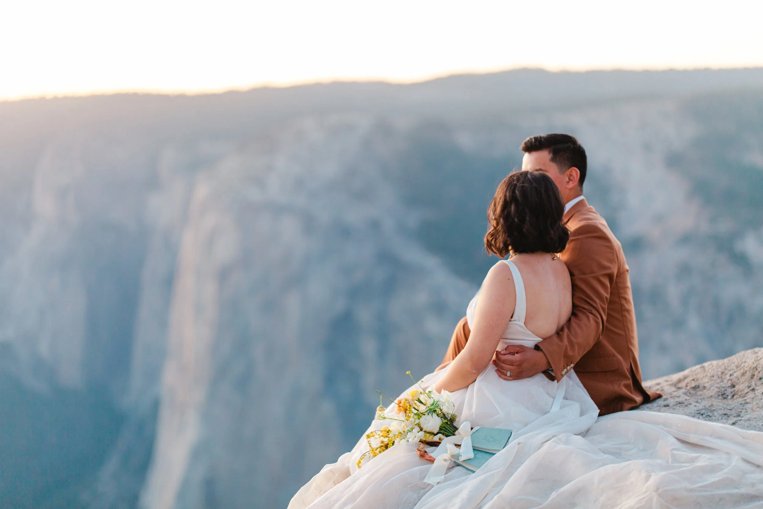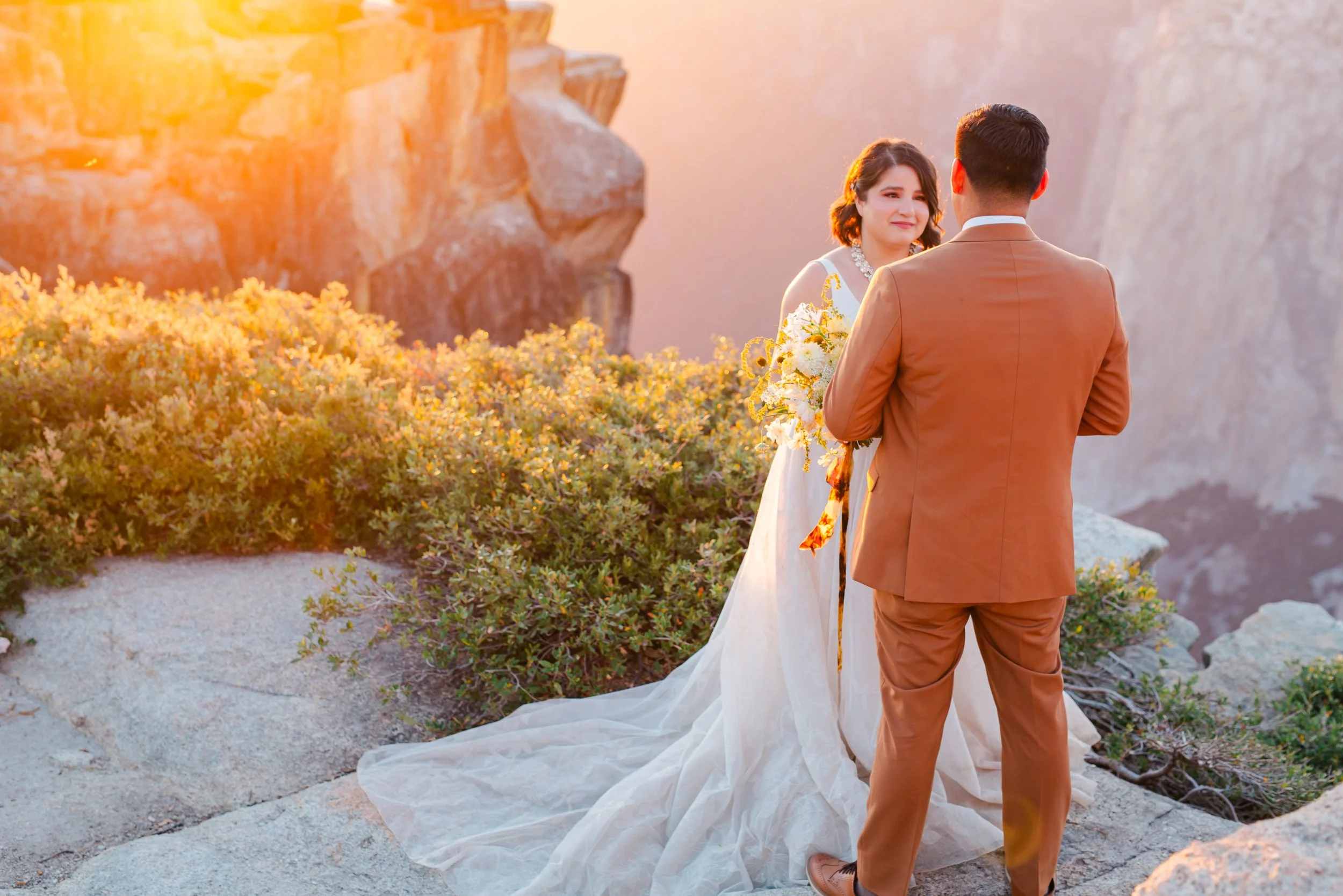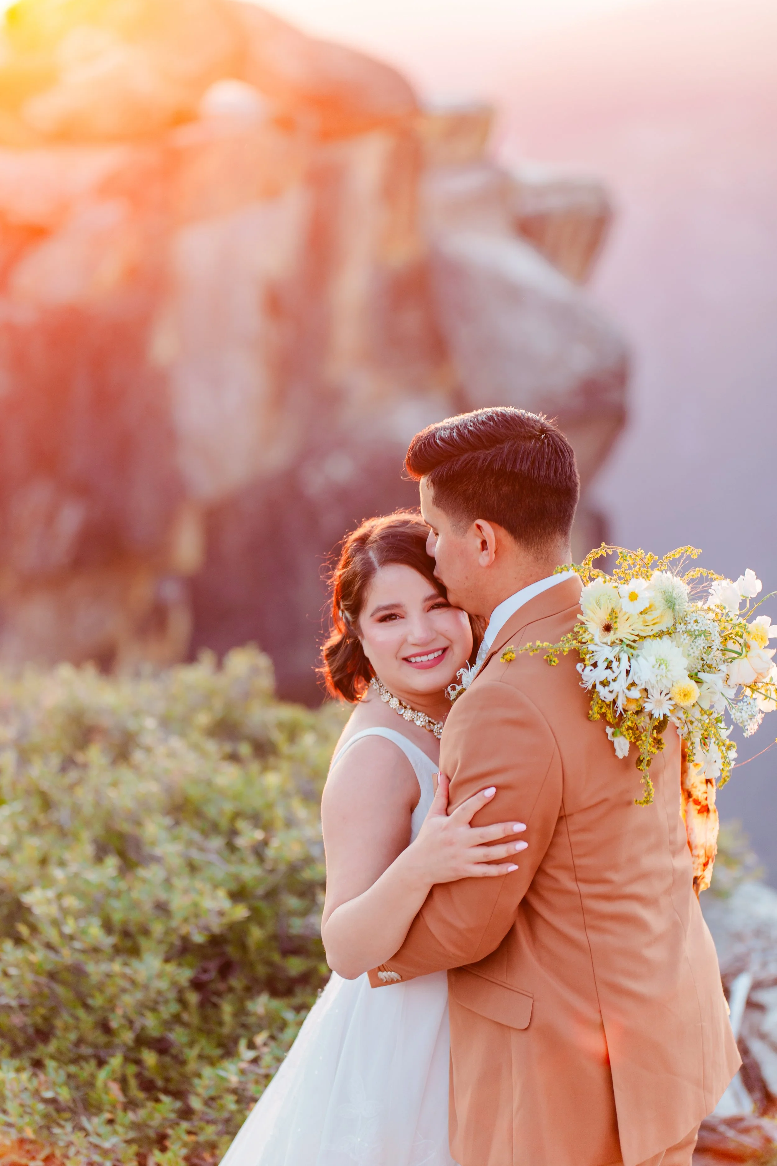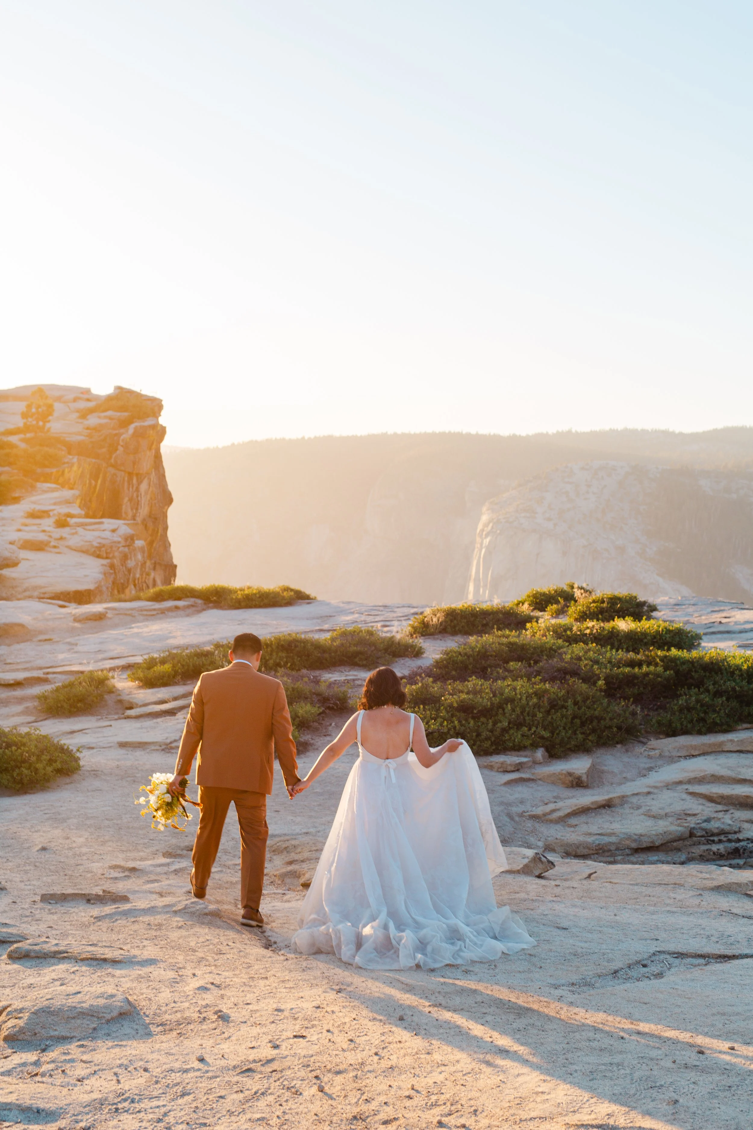 When the bride’s signature color is pink, even Yosemite pulls through with the most perfect magenta sunset of all time. What could be better than intimate vows at Taft Point. The florals were carefully crafted with non-invasive blooms that complimented the vibrant spirit of David & Pris. The dress was a stunning Marchesa gown with subtle lilies embroidered throughout. The shoes were, of course, the bride’s favorite Dolce & Gabbana embellished pumps.